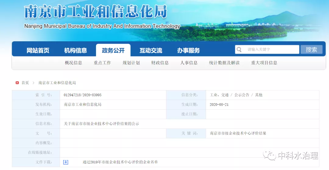 根據(jù)南京市工業(yè)和信息化局《關于做好2019年市級企業(yè)技術中心評價工作的通知》,南京中科水治理股份有限公司榮獲“南京市市級企業(yè)技術中心”認證。2014年,我司首次獲得此認證,往后每三年一次的認證均通過。