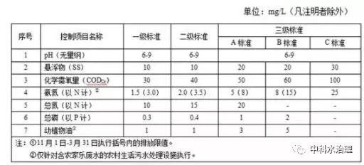規(guī)模大于 2m3 /d(含)的新建農(nóng)村生活污水處理設(shè)施,水污染物排放限值按下表對(duì)應(yīng)的規(guī)定執(zhí)行。
