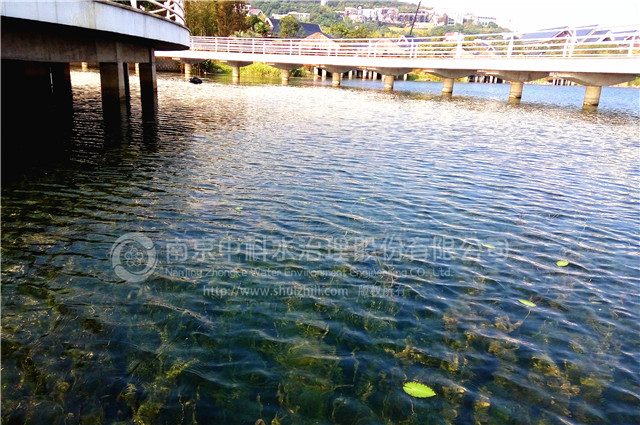 南北水塘水生態(tài)修復(fù)示范項(xiàng)目由南京中科水治理股份有限公司進(jìn)行設(shè)計(jì)施工一體化工程,工程總面積22.8萬㎡,平均水深2.2m。南北水塘在修復(fù)前為典型的富營養(yǎng)化水體,清水型生態(tài)系統(tǒng)構(gòu)建技術(shù)工程施工后,主要水質(zhì)將達(dá)到地表水環(huán)境治理標(biāo)準(zhǔn)GB3838-2002 Ⅳ類以上,透明度達(dá)到1.5m及以上,且每年不少于300日。