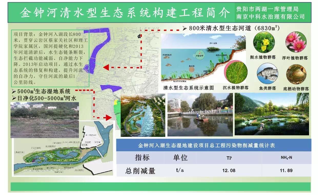 隨著經(jīng)濟(jì)社會(huì)的快速發(fā)展、城市人口的迅速增長(zhǎng),城市污水處理設(shè)施、收集管網(wǎng)建設(shè)嚴(yán)重滯后,黑臭河道問題長(zhǎng)時(shí)間無(wú)法解決。今年年初,貴州省政府印發(fā)《貴州省水污染防治行動(dòng)計(jì)劃工作方案》:明確到2017年,貴陽(yáng)市建成區(qū)基本消除黑臭水體。在此背景下,貴陽(yáng)市兩湖一庫(kù)管理局對(duì)阿哈水庫(kù)流域進(jìn)行綜合整治。阿哈水庫(kù)金鐘河入湖段生態(tài)治理項(xiàng)目是阿哈水庫(kù)流域進(jìn)行綜合整治的項(xiàng)目之一,為防治環(huán)境污染,充分發(fā)揮和強(qiáng)化河流自身的凈化能力,同時(shí)兼顧景觀設(shè)計(jì),采用我公司清水型生態(tài)系統(tǒng)構(gòu)建技術(shù)對(duì)金鐘河流域水體污染進(jìn)行防治。