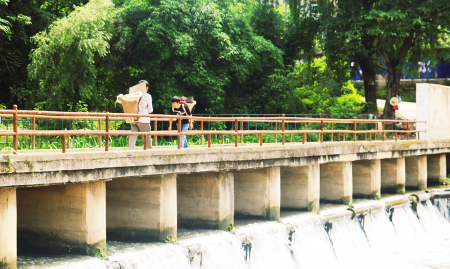 生態(tài)濕地選址在金鐘河入湖段旁,理工大校園內(nèi)家屬區(qū)中,地理位置非常偏僻,與外界交通便道相隔遙遠(yuǎn),材料運(yùn)輸非常不便,構(gòu)造生態(tài)濕地的每一塊泥瓦都由項(xiàng)目部工人師傅用竹簍背入施工場(chǎng)地。